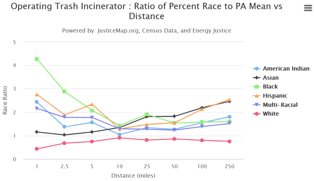 - Trash incinerators in BIPOC communities are surrounded by 2.5 times as many people and aretwice as large as those in white communities