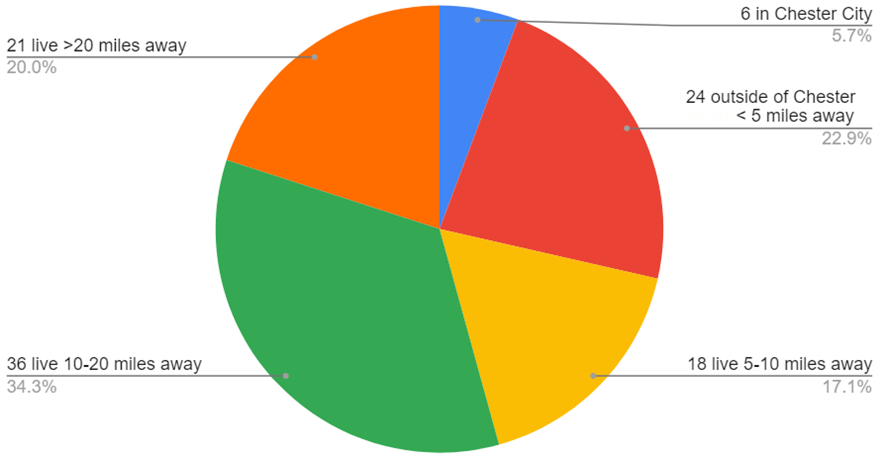Covanta explained in January 2021… they have 105 full-time, salaried employees and only six are Chester residents. 71% of these workers choose to live more than five miles away from their employer; 54% more than 10 miles away.