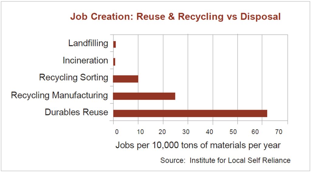 At least 5-10 times as many jobs could be provided if Zero Waste solutions like reuse, recycling and composting replaced the incinerator.