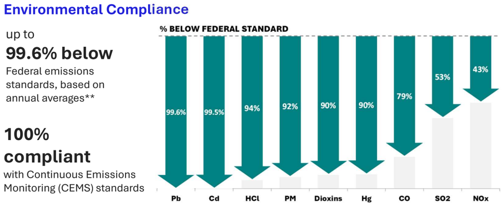 Covanta says: “We monitor continuously for all of our CEM parameters…” and claims the are below federal emissions standards, but let’s see what they AREN’T saying.