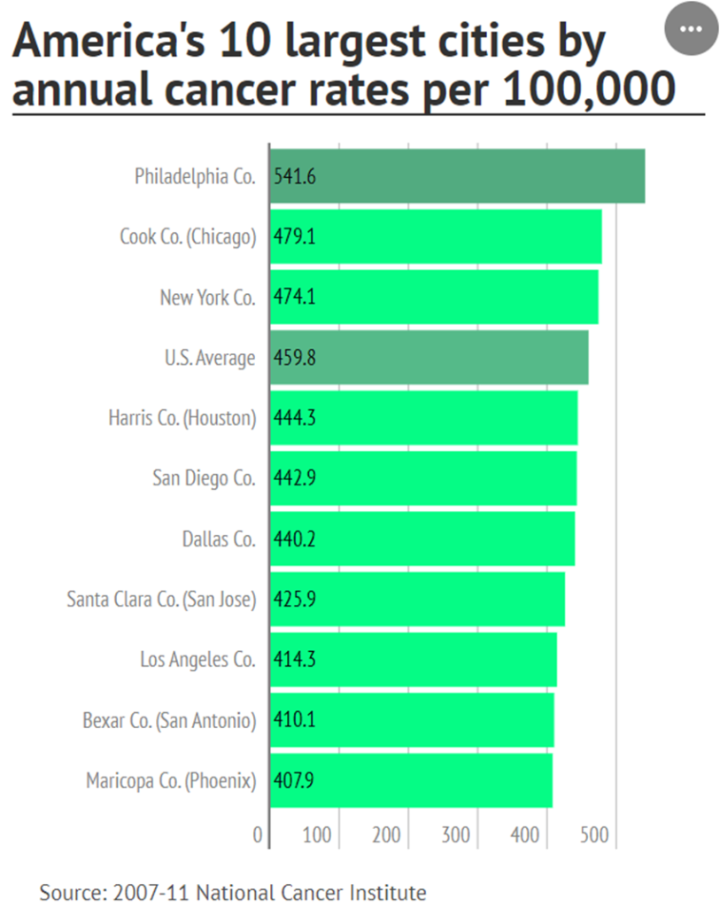 Philly is now #2 in cancer incidence among the counties hosting the 10 largest U.S. Cities